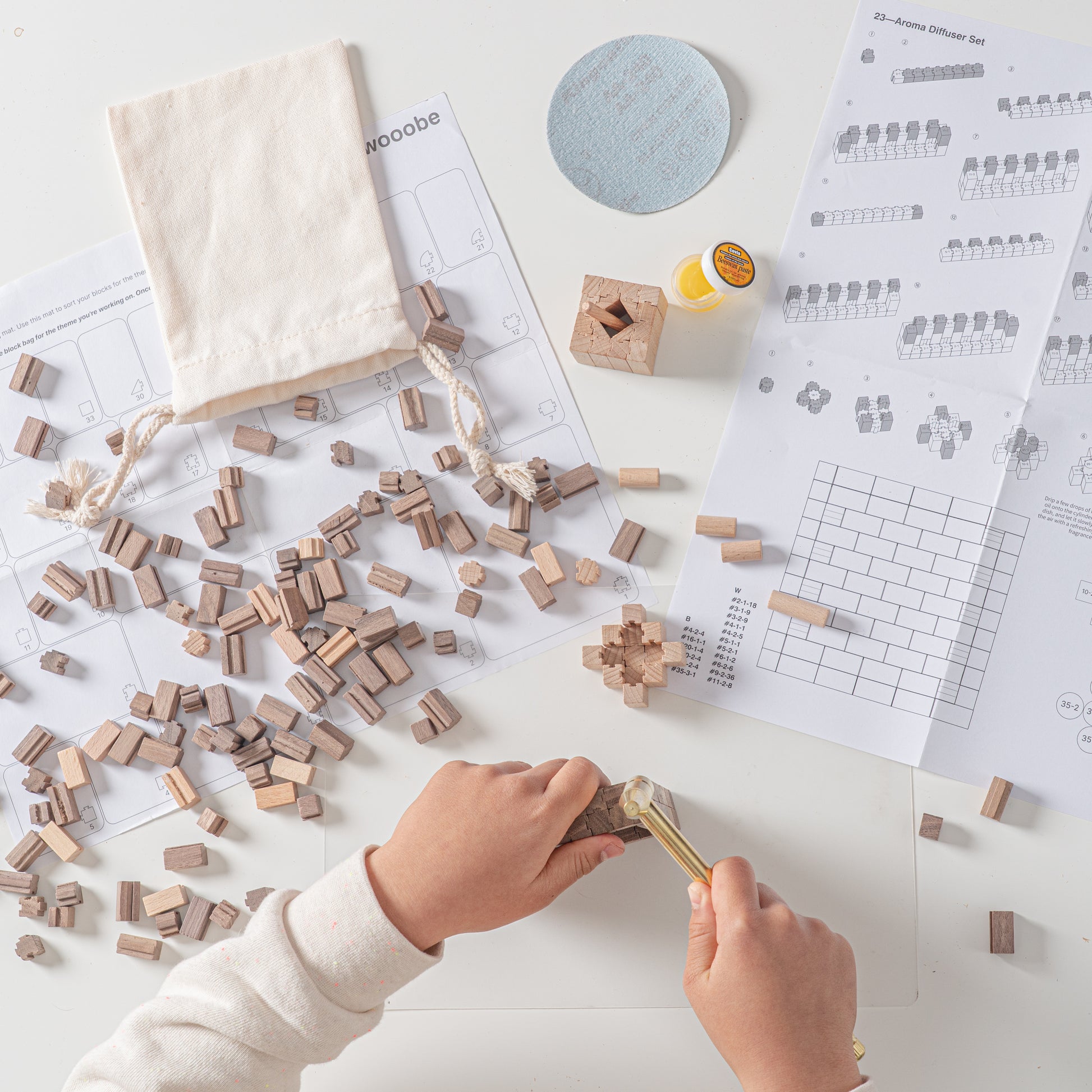 A handcrafted wooden aroma diffuser set made from AAA-grade Croatian beech and Super-grade North American walnut (essential oils not included). Designed for hands-on DIY assembly, it features a square wooden base for holding the diffuser and aroma accessories.