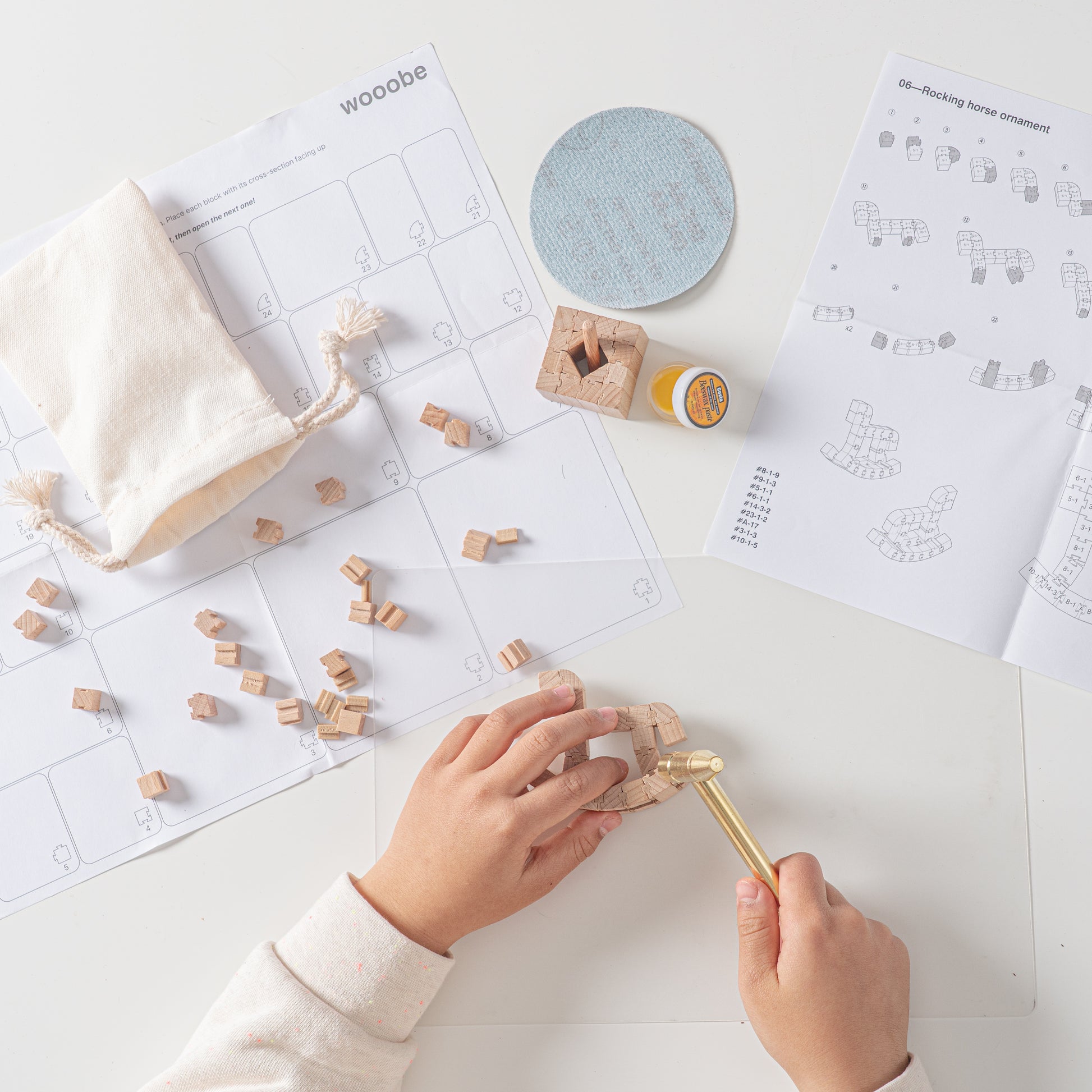 A handcrafted wooden rocking horse ornament made from AAA-grade Croatian beech and Super-grade North American walnut. Designed for hands-on DIY assembly, it features Wooobe’s signature curved structure and specially designed 5-degree angled dovetail blocks.