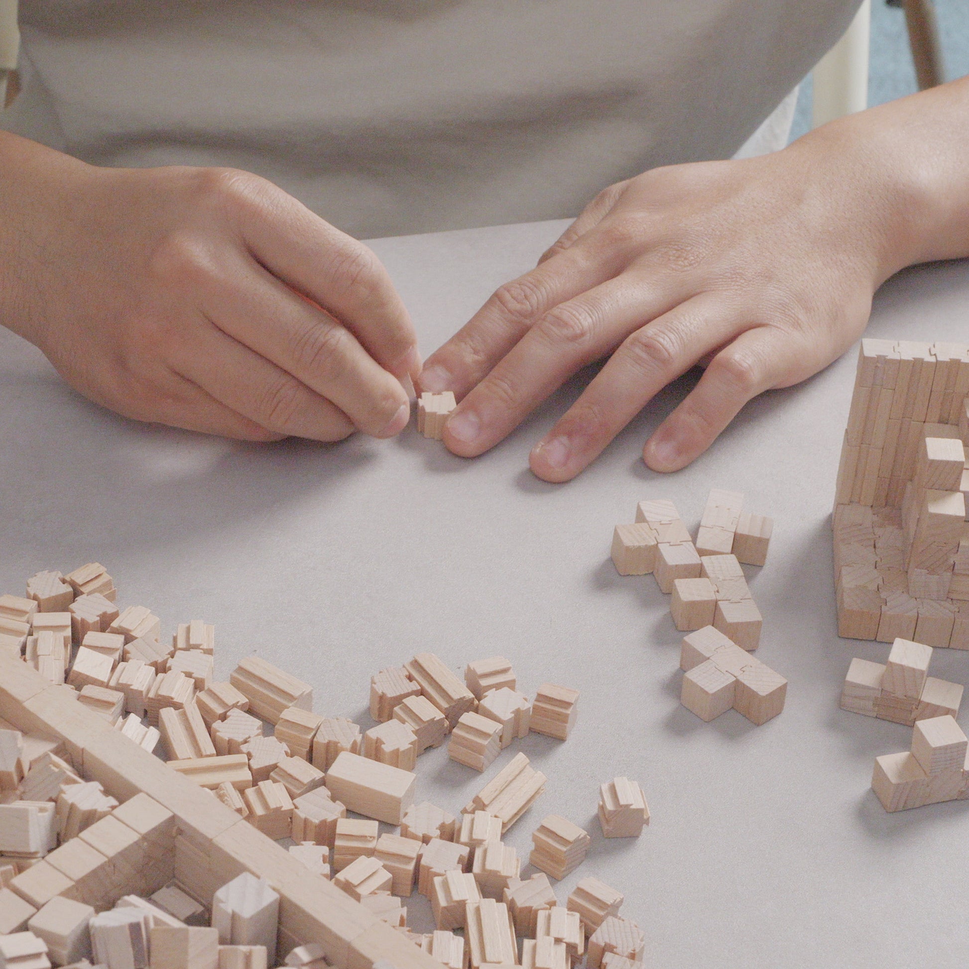 We use high-precision processing equipment to ensure that our particles can be firmly assembled by pressing the mortise and tenon joints with your fingers. Of course, in order for you to easily join the particles, we recommend using our small hammer for assembly.